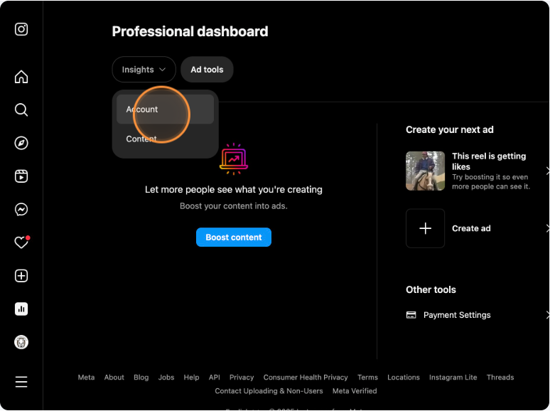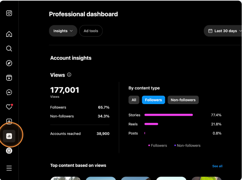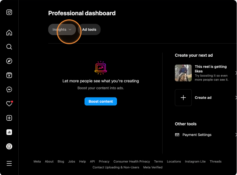 Go to your "Dashboard" on Instagram